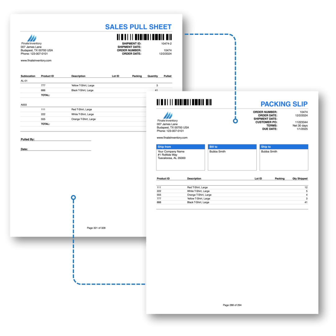 Focus on fulfillment, not where the order came from. With Finale’s pick and pack method, managing orders from multiple sales channels like Shopify, ShipStation, and ShippingEasy becomes unified. The system consolidates all orders into one interface, ensuring accurate picking, packing, and real-time inventory updates across marketplaces for seamless fulfillment.
