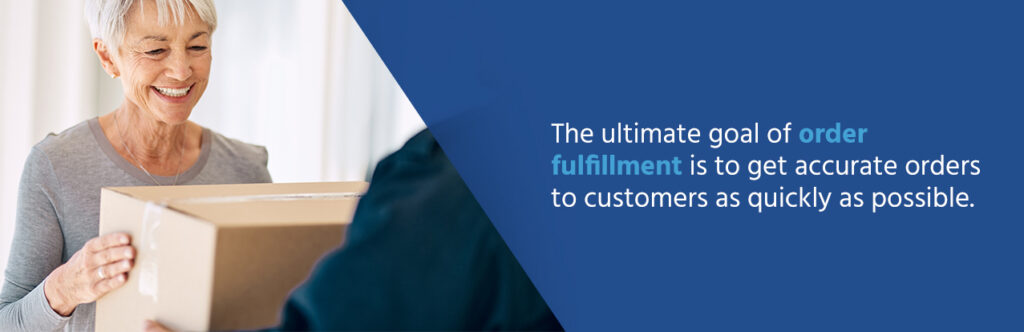 Order fulfillment is the process of getting your products to your customers. It involves three key steps: receiving inventory, processing customers’ orders and shipping orders to customers. You can fulfill orders in many different ways, including shipping items directly from your warehouse or working with a third-party fulfillment service. Regardless, your fulfillment method should enable you to meet your customers’ demands for fast delivery and accuracy. Over a third of customers cancel online orders due to slow delivery times, so it’s critical to select an efficient process.