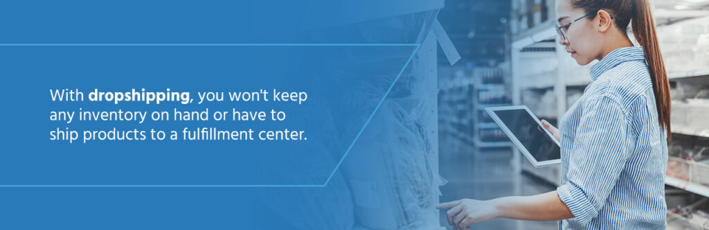 With dropshipping, you won’t keep any inventory on hand or have to ship products to a fulfillment center. When a customer buys an item from your online store, you’ll purchase it from a supplier, such as a manufacturer or a distributor. In other words, you’ll only pay for items you sell. The supplier will then pick, pack and ship the order to the customer.